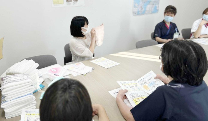 例年に引き続き、今年度も【おむつマイスター】取得のため、アテントの河村様を講師に迎え、就業後に月1回・計5回の研修会を行っております。