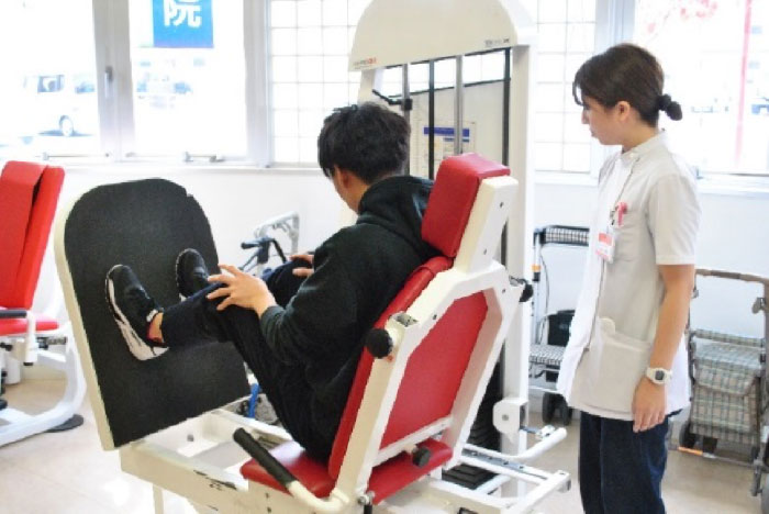 筋力向上を目的とした多種のマシーンを用意しています。担当の理学療法士が患者様の状態に応じて負荷量やプログラムを作成いたします。また、入院患者様の自主練習用に開放もしています。